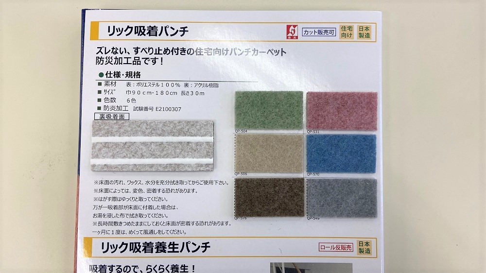 住宅向けの「リック吸着パンチ」は滑り止め付きなので、切って敷くだけなのにズレにくく安心です。
