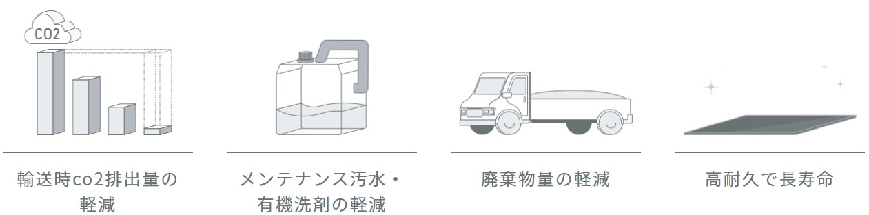 1.既設床にも重ね貼り可能な、優れた下地不陸隠蔽性による美しい貼り映え。
