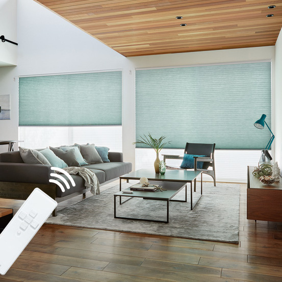 大開口の窓において確保するのが難しい、採光とプライバシー。本品はドレープとレースを交互に配置し、ドレープの間のレースによりプライバシーの保護はピカイチ。電動でリモコン操作も可能とし、高齢化社会にもバッチリマッチ。