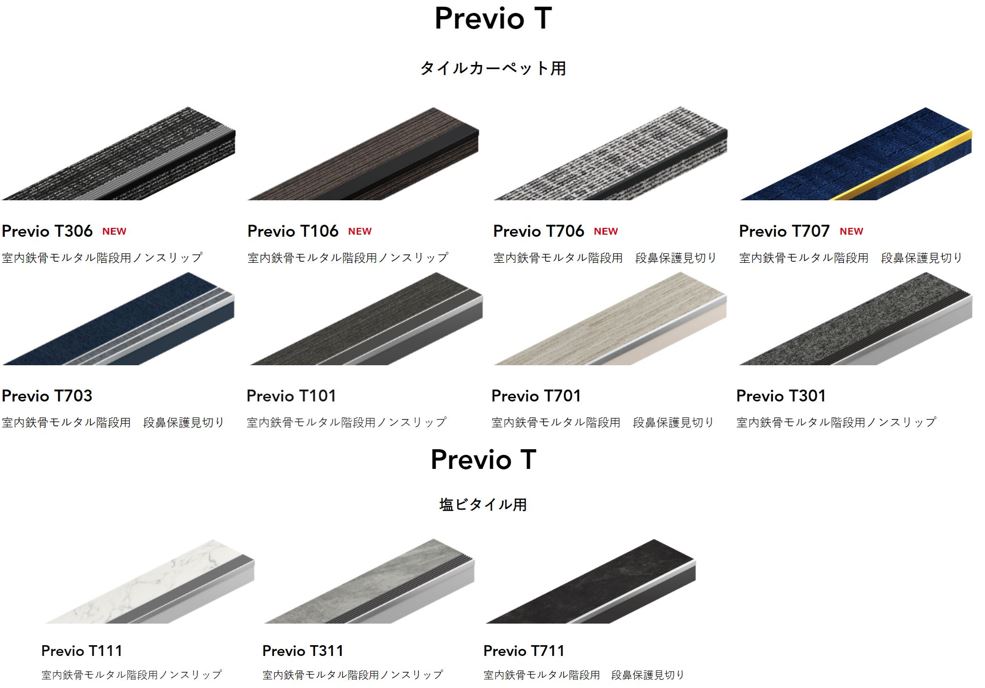 2020年3月の発売以来、グッドデザインBEST100の受賞を契機に建築家・意匠設計者のみなさまから絶大な支持をいただいているというノンスリップ金物「PrevioT」。同時に当製品に対する要望も寄せられました。それがこの2点です。 1-蹴込みをタイルカーペット仕上げで、施工性もよく納めたい。※従来の「PrevioT」は蹴込みは塗装仕上げを推奨 2-ブラック仕上げタイプも欲しい。 そんなご要望にお応えし「PrevioT」に「106、306、706、707」が加わり、全11タイプとなりました。そして「1」の要望に対して新たにラインアップされた製品の形状がこちらです。