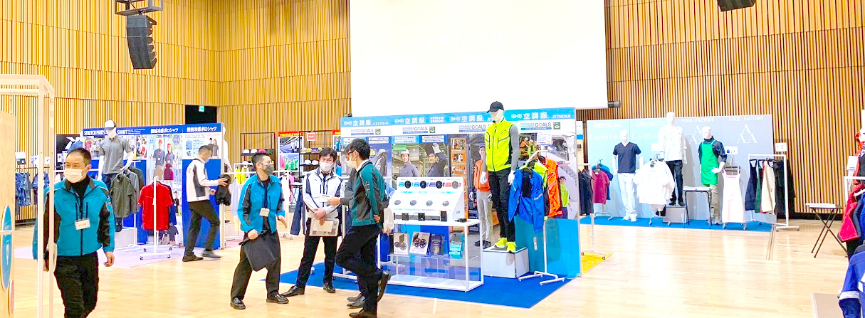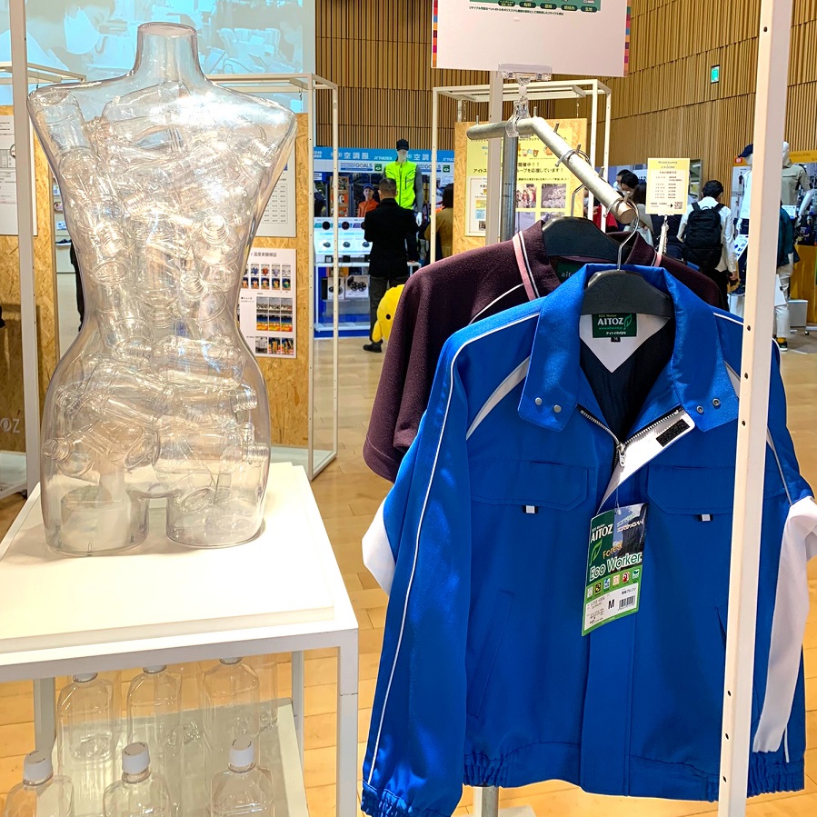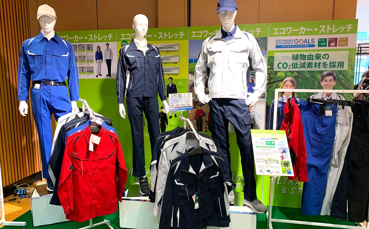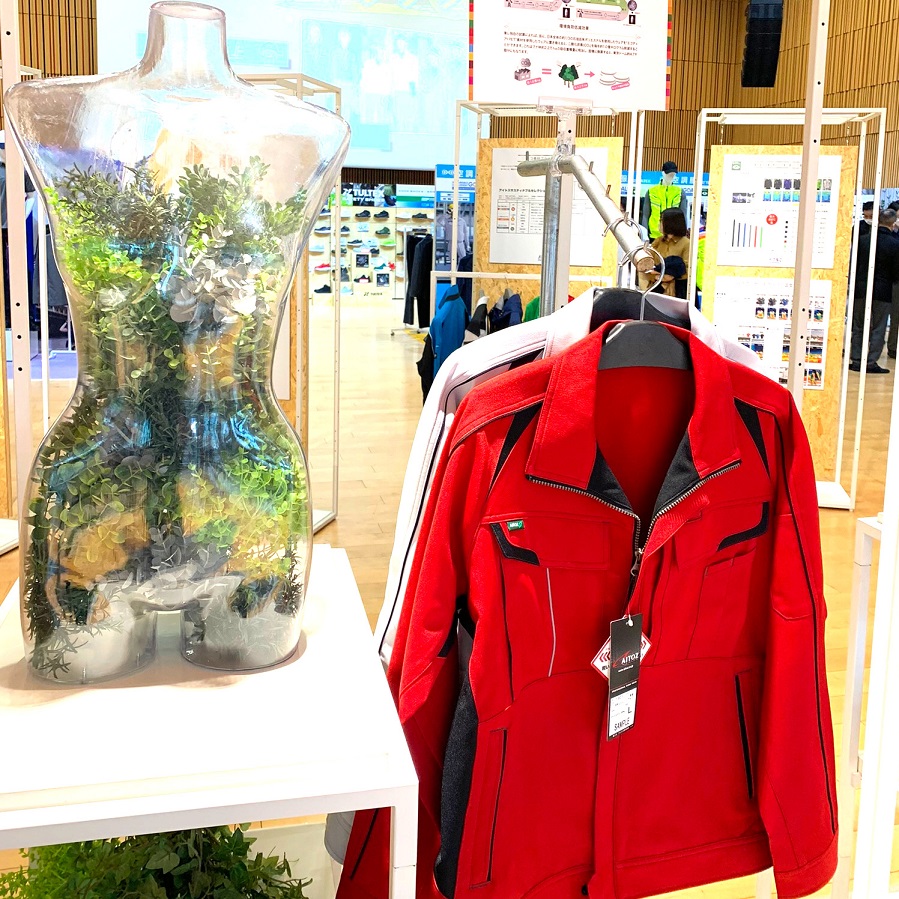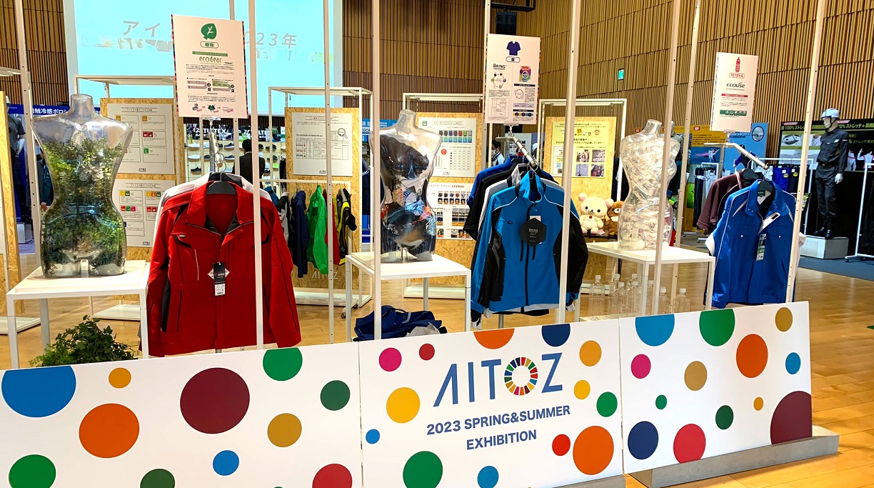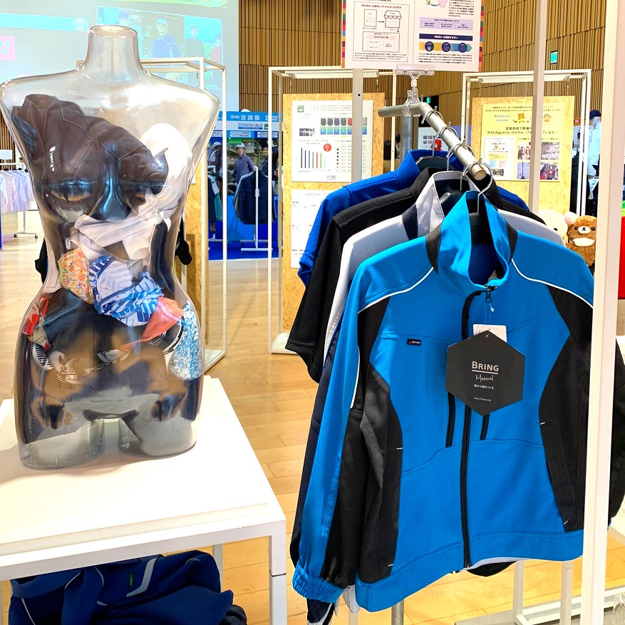 会場内で先ず紹介されていたのは、環境に配慮した生地を使用したウェアの紹介でした。その他にも、企業として取組内容と、それがSDGsの何番目に該当するかなども併せて紹介されていました。