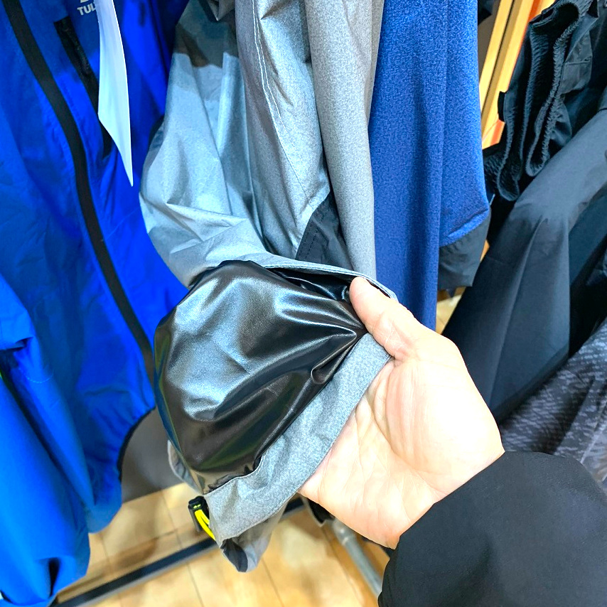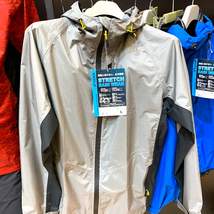 続いて、レインウエアです。とろけるような肌触りなのに、耐水圧がなんと10,000mm!!そして、透湿度も20,000gと高め!!個人的には、スノボに行けるレベルと認識しています。そしてやっぱり「ストレッチ」。