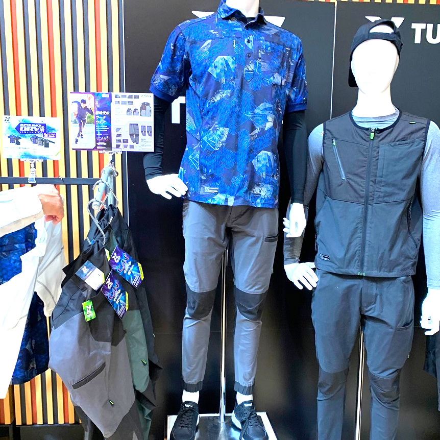 ここ数年でド定番となった空調服の機構が改良され、ファンをバラして水洗いができるようになりました。当たり前のようですが、うれしい改良箇所です。そして、衣服にも改良点があります。従来は背面にファンがあり、車などへ乗る際に邪魔になる事がありました。しかし今年から、ファンを両脇下部に装着する空調服がリリースされました。・・・が、写真を撮り忘れました。