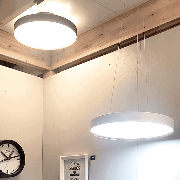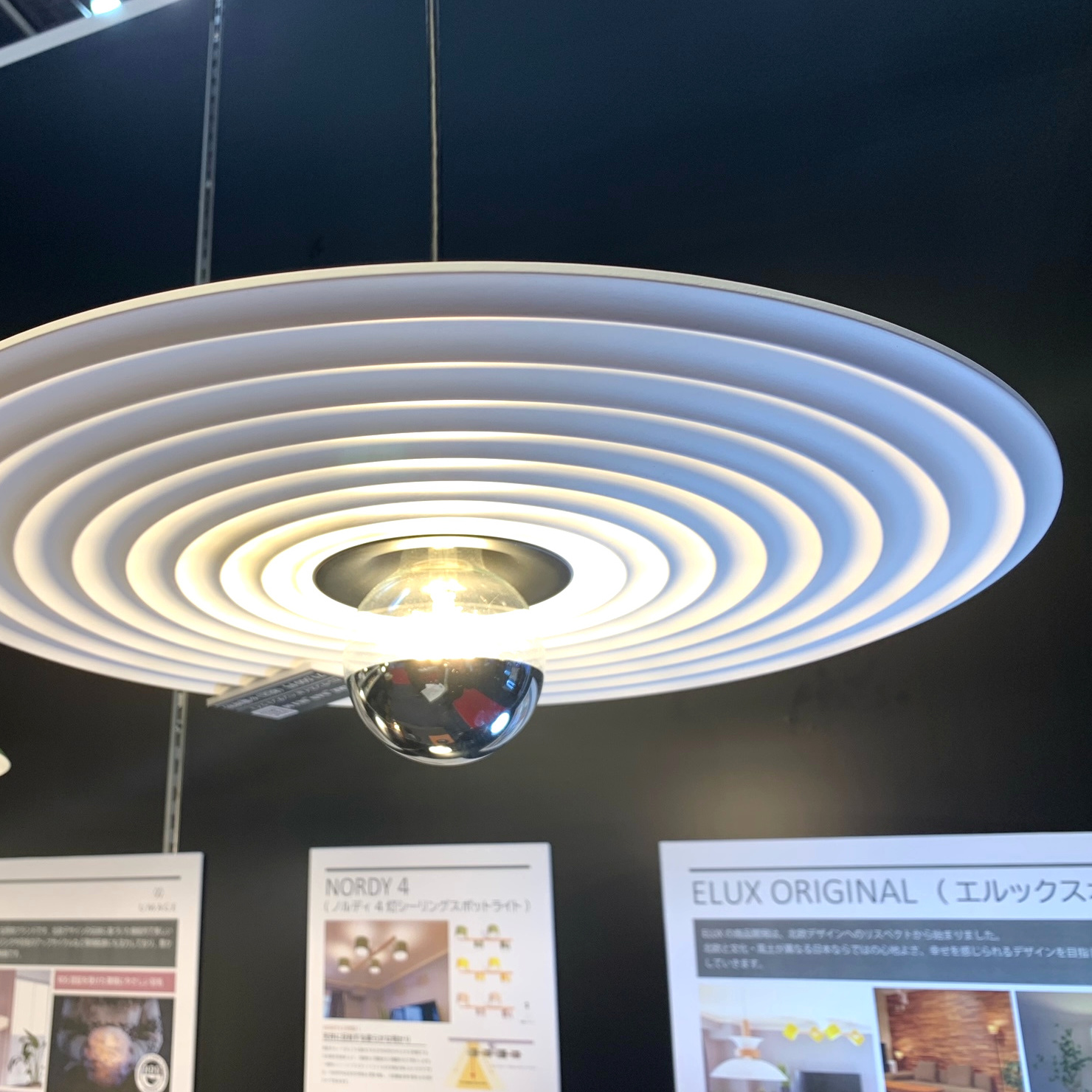 エルックスの製品開発におけるフィロソフィに北欧の「ヒュッゲ」は外せないキーワードです。この「ヒュッゲ」とはデンマーク人がとても大切にしている、時間の過ごし方や心の持ち方の事を言うそうです。そして、今回リリースされた新製品も、まさにベストオブ北欧のペンダントはコレで決まり!!というヒュッゲなデザインの照明も展示されていました。