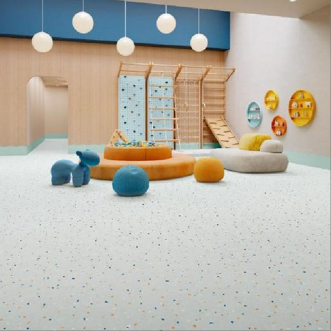 テラゾーとマーブルを掛け合わせた明るくリズミカルな柄感で、子供たちが賑わう楽しい雰囲気を演出。