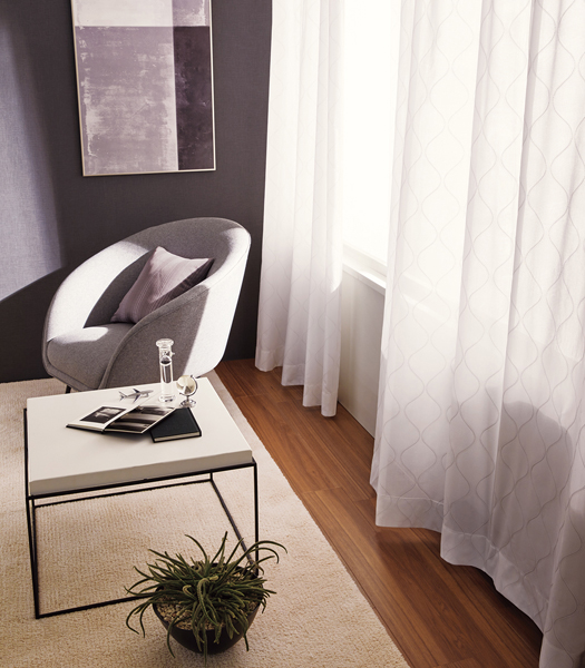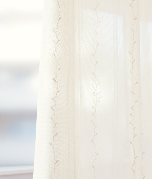 ナチュラルモダンな印象の遮熱糸レースをラインアップに加えました。ゆるやかな曲線の重なりを、やさしい色合いで表現しています。使いやすくて意匠性もある、そんな遮熱糸レースをお求めのユーザーにおすすめの商品です。