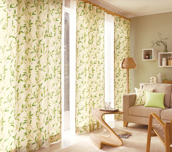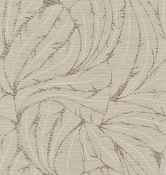 おおらかなリーフのデザインを小さなチェックで織り上げています。また、リーフの色のグ ラデーションがやわらかいボーダーになっています。お部屋に馴染むやさしいベージュ、爽やかな印象のグリーン、どちらも、ナチュラルテイストのお部屋をお洒落に演出してくれるファブリックスです。