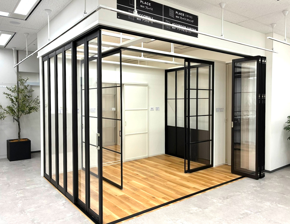 稼動間仕切「プレイス・プレイス スウィング」シリーズもフルラインアップで体験いただけます。検討中の方にとって、実物で操作感まで確かめられるのはうれしいポイントです。