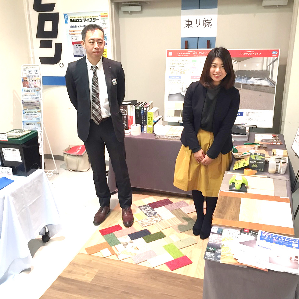 床製品では東リが新製品のファブリックフロアやピタフィをPR。(左下写真)