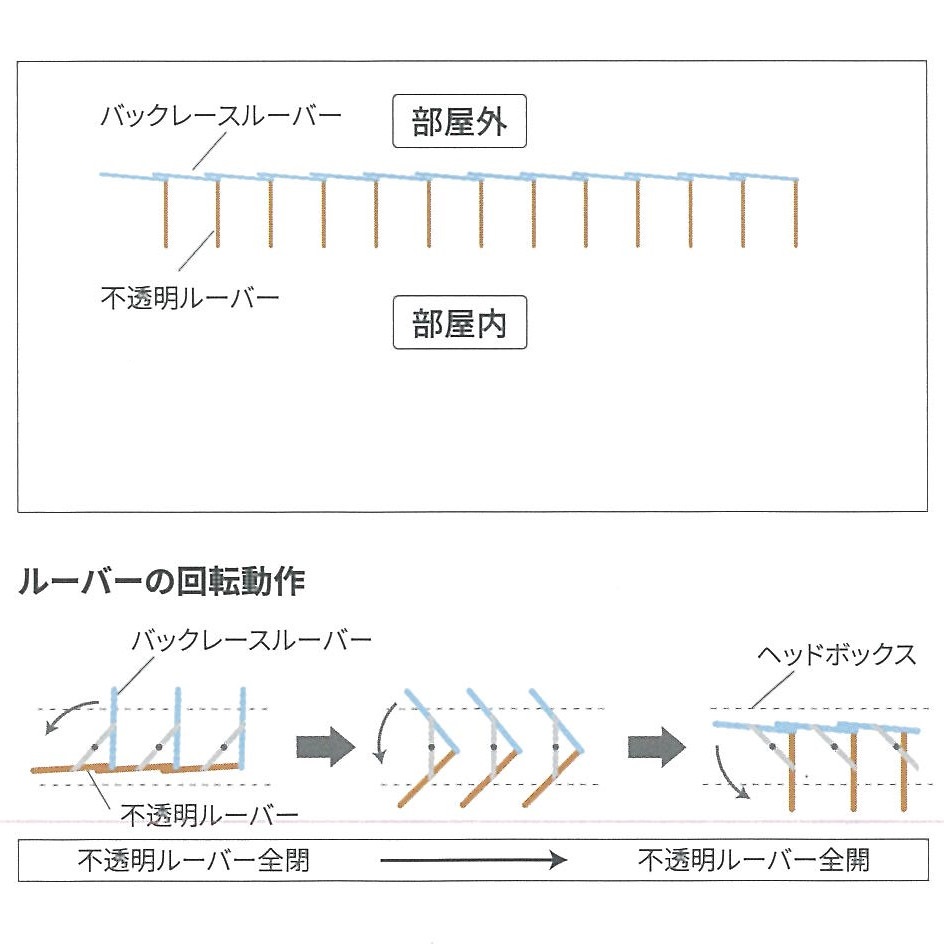 シングルタイプの他、透過性のあるルーバーと透過性のないルーバーを組み合わせたペアタイプがあります。