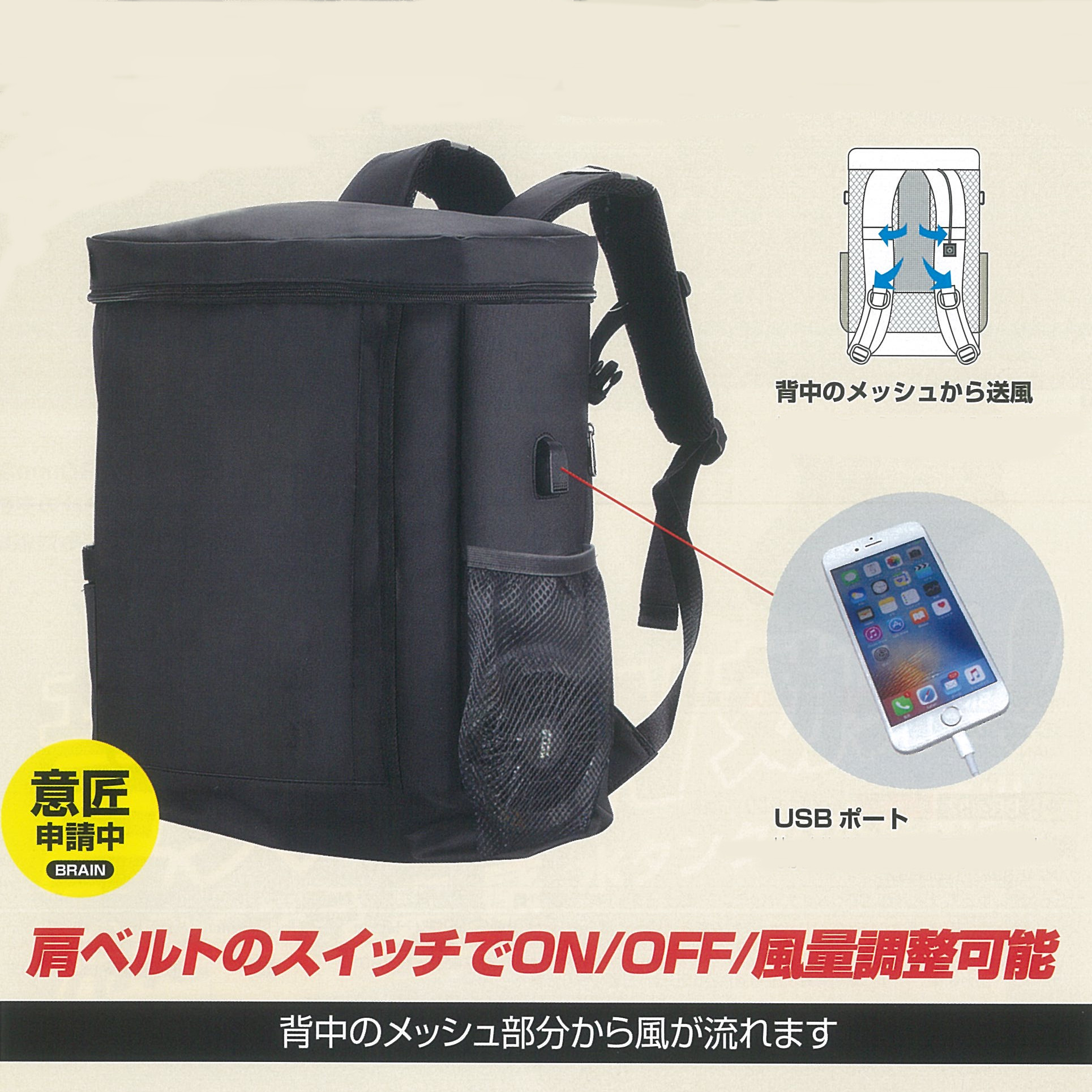 服だけでなく、空調リュックや空調後頭部カバーもあります。