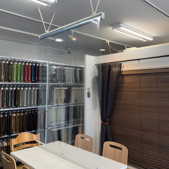 ビニルシートなどの加工・販売を行う「森松(株)」による、特製飛沫感染防止フィルム。建造物内への使用を考えて、防炎機能が付与されています。ウイルス被害が広がる、この状況を受けて「社会への貢献」として、お値打ち価格でご提供可能です!!